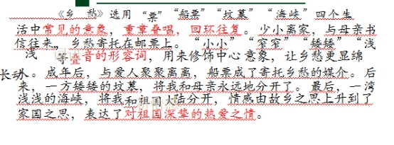 任务要求: 请阅读任务单上余光中的诗歌《乡愁四韵》 , 运用我们今天课上学到的方法, 参考下面的示例, 结合具体诗句, 解读诗歌意象, 为诗歌撰写 一 则诗评 。( 200字左右)
