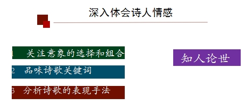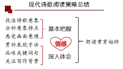 (设计意图:让学生对现代诗歌的阅读理解方法有个整体性全局性的把握)
